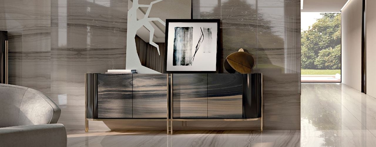 Коллекции отличаются не только дизайном, но и материалами. Например, буфет Flamme blu notte и terra bruna подойдут для создания контрастных интерьеров, а модульные элементы обеспечивают гибкость использования.