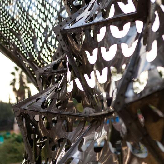 Блум — это архитектурная инсталляция, которая адаптируется к изменениям температуры и освещенности, обеспечивая комфортные условия без использования дополнительных ресурсов.