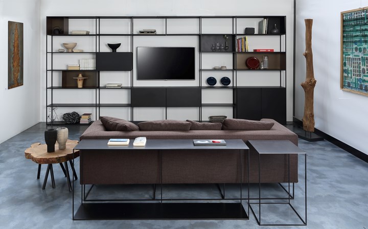 Easy Irony TV — это модульный книжный шкаф, который предлагает не только место для книг, но и удобную подставку под телевизор. Изготовленный из металла и доступный в двух цветах: медно-черный сабле и белый с тиснением, этот шкаф станет стильным акцентом в любом интерьере.