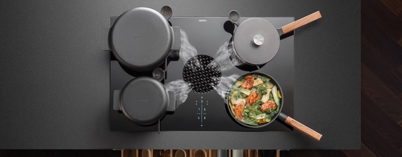 Вытяжка BORA X Pure выделяется за счет своей индукционной системы и уникального дизайна. Она обеспечивает эффективную вентиляцию, улучшая качество воздуха в кухне.