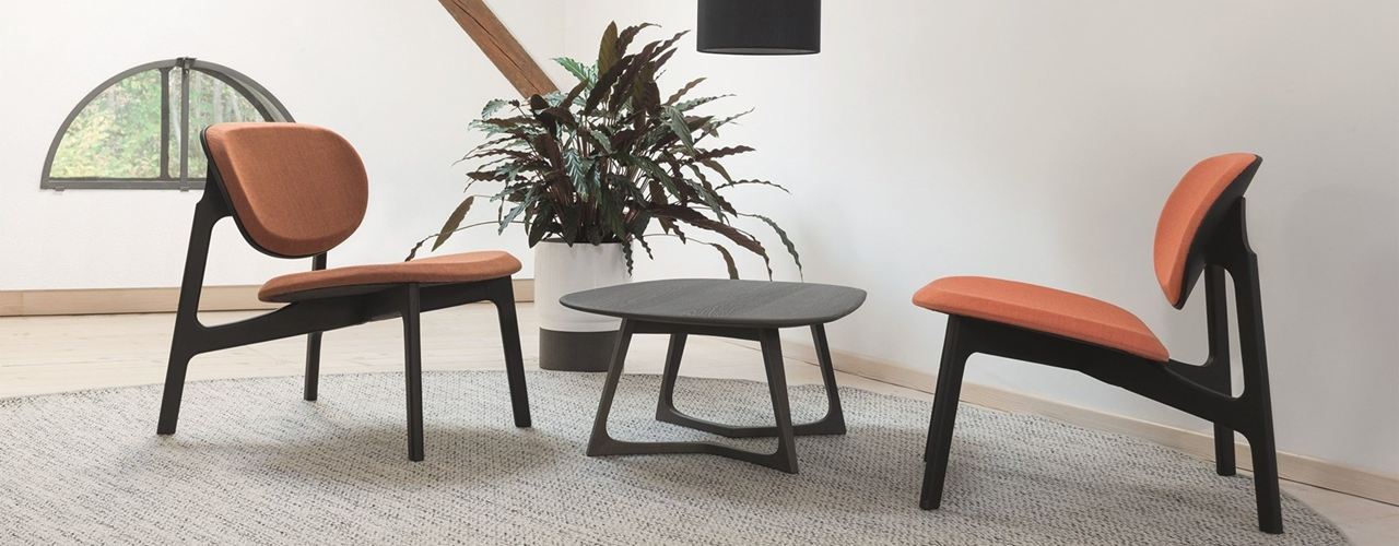В коллекцию входят стулья, барные стулья и шезлонги. Каркас выполнен из массива дерева, а сиденье и спинка — из формованного дерева с возможностью обивки тканью. Это делает их идеальными для дома или стильного ресторана.