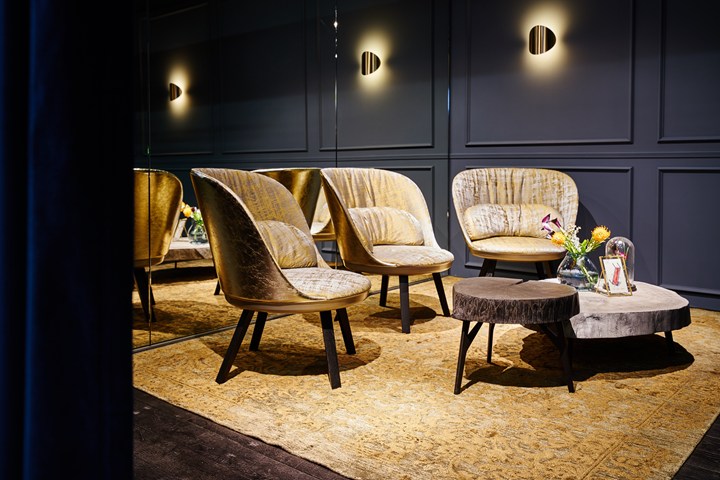 На выставке imm cologne 2018 Freifrau представила новые версии своих коллекций Rubie, Amelie и Marla. Использование бархата, кожи и светлых пород дерева создает атмосферу уюта и роскоши.