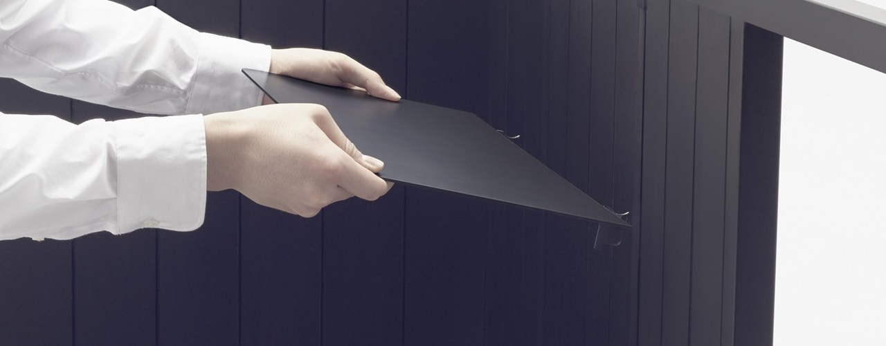 Стол оснащён асимметричной перегородкой для создания уединённого пространства, системой регулируемых полок и магнитными светодиодными лентами. Эти элементы позволяют адаптировать рабочее место под конкретные нужды.