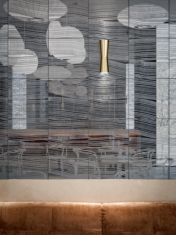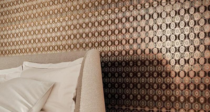 Коллекция включает зеркала с металлическими текстурами и плитку с переливающимися эмалями. Эти элементы создают уникальные световые эффекты, изменяя восприятие пространства.
