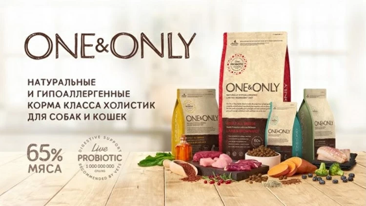 Компания ONE&ONLY специализируется на гипоаллергенных холистиках, содержащих до 65% натурального мяса. Они предлагают широкий ассортимент сухих и влажных кормов для собак всех возрастов и пород. Продукция подходит даже для питомцев с пищевой непереносимостью и аллергией благодаря отсутствию субпродуктов, глютена и синтетических добавок.