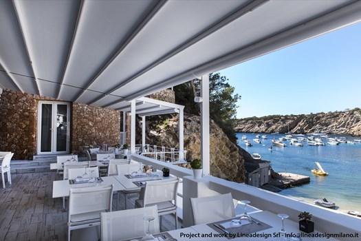 В Maya Beach Club были использованы паруса Libeccio для затенения и дизайн Pergotenda® Palladia для входа. Эти элементы не только подчеркивают архитектуру, но и усиливают ощущение единства с природой.