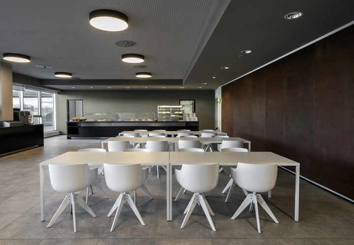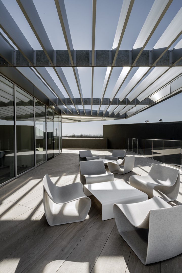 В офисном пространстве использованы мебель и решения от MDF Italia, такие как сидения Flow Slim и диваны Yale, которые обеспечивают комфорт и функциональность. Важно также отметить использование Tense столов в конференц-залах, которые способствуют открытому обмену идеями благодаря своей эргономике.