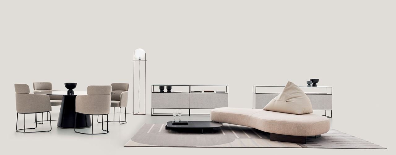 Коллекции включают мягкие стулья и столы от Даниэле Ло Скальцо Мошери, а также диваны и кресла от известных дизайнеров, таких как Анна фон Шевен и Edi & Paolo Ciani.