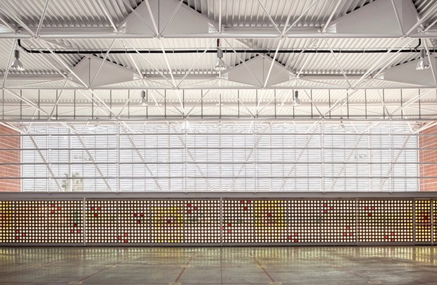 Проект "Многоцелевой учебный зал в школе Гавина" получил первую премию за использование плитки в решении акустических и световых проблем.