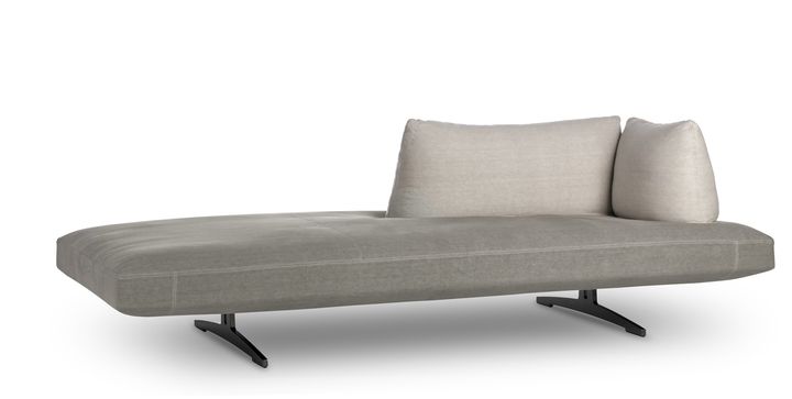Подушки дивана могут быть расположены под разными углами, обеспечивая комфорт. Металлическая ножка придает дивану легкость и современный вид.