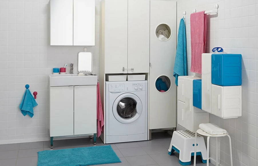 На рынке представлено множество моделей шкафов для стиральных машин. Например, напольные модели от IKEA с отделениями для хранения бытовой химии или пеналы от Leroy Merlin, которые идеально подойдут для узких ванных комнат. Они отличаются не только размером, но и материалами, из которых изготовлены, что позволяет выбрать оптимальный вариант для любого интерьера.