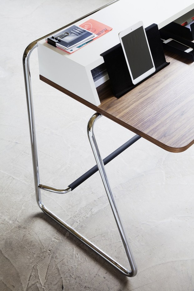 Коллекция стальных труб включает письменные столы и модульные системы, которые легко адаптируются к различным пространствам благодаря гибкости конфигурации.