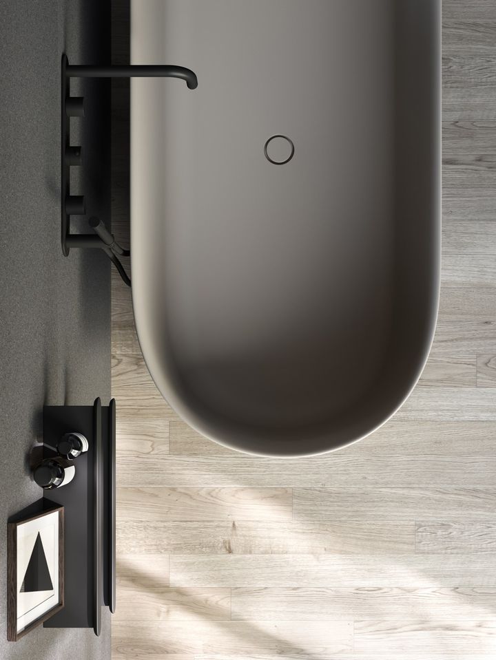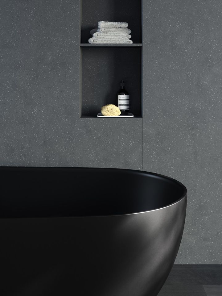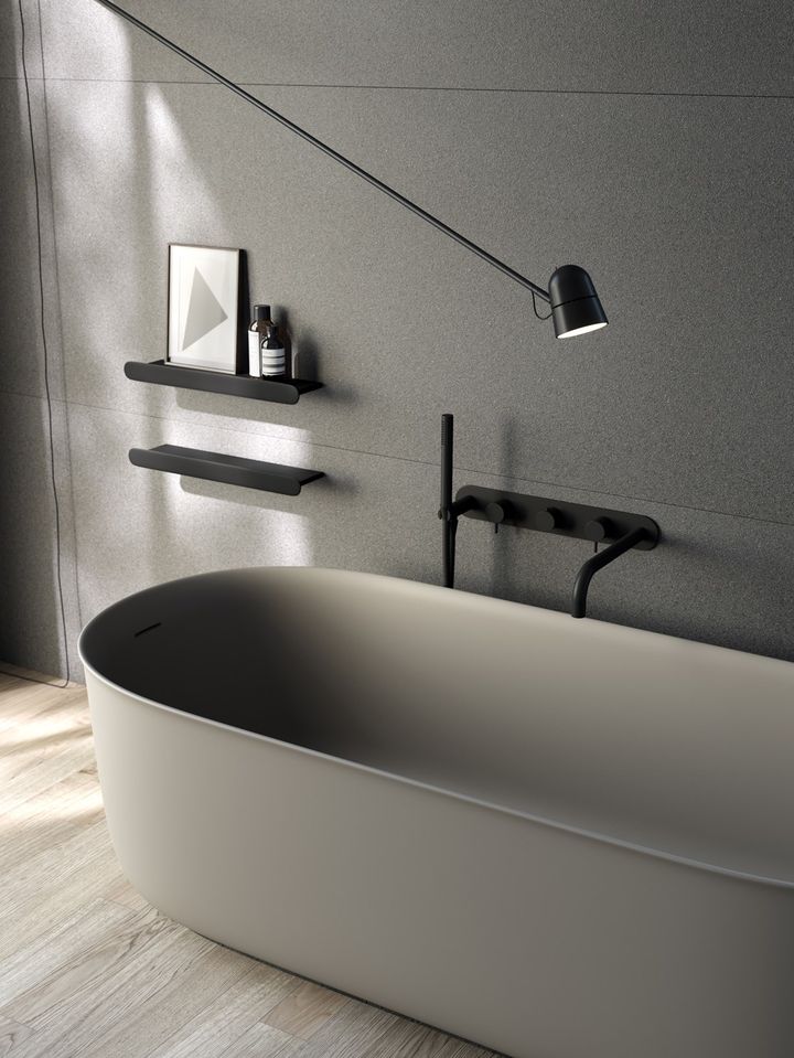 Ванны доступны в пяти цветах: черный, графит, светло-серый, светлый грязь и имбирь.
