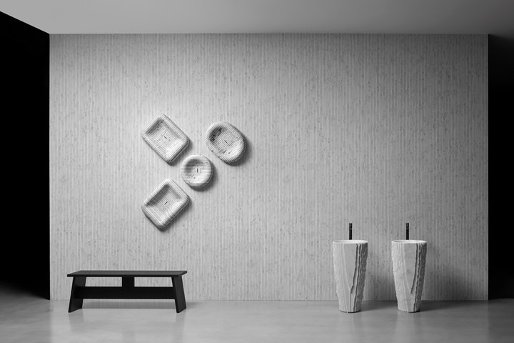 Обновленное пространство antoniolupi отличается уникальными цветовыми решениями и сценографическими декорациями, создающими гармоничный интерьер.