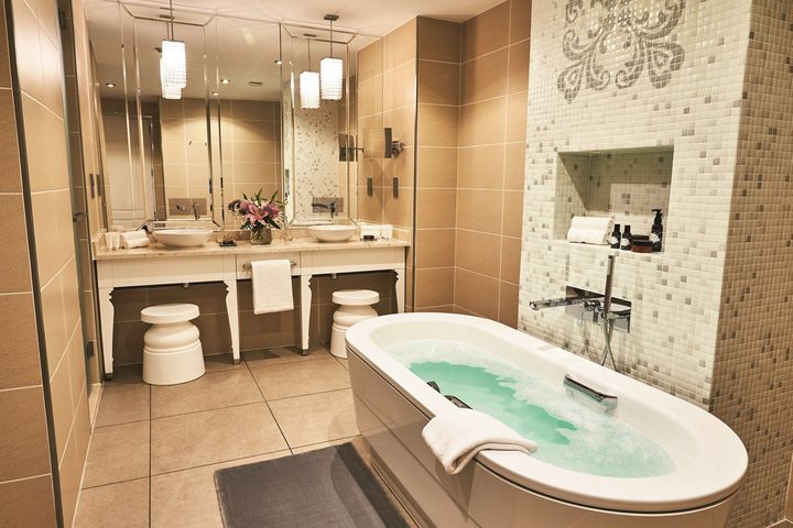 В отеле установлены ванны Classic Duo Oval и Classic Duo Oval Wide, разработанные дизайн-студией Sottsass Associati. Эти модели отличаются элегантностью и долговечностью.