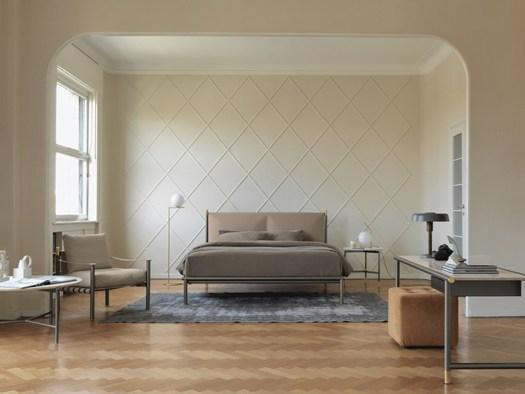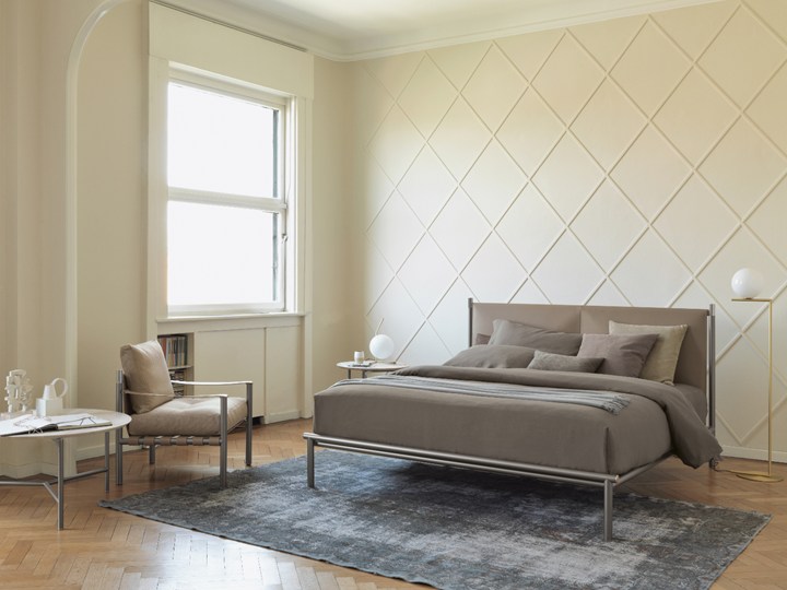 IKO отличается трубчатой стальной конструкцией, доступной в нескольких цветах. Изголовье обтянуто кожей различных оттенков, что позволяет выбрать оптимальный вариант для вашего интерьера.