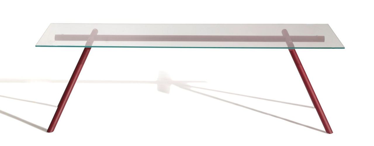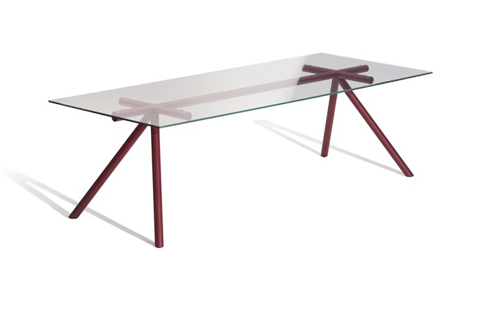 Стол W выполнен из стальной трубчатой конструкции и закаленной стеклянной столешницы.