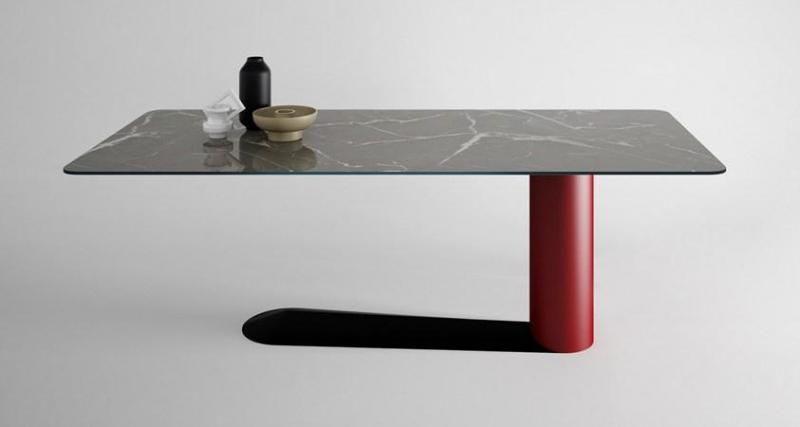 Жирный стол от Lago — это асимметричная модель, которая поддерживается единственной децентрализованной опорой. Это позволяет создать иллюзию левитации и максимизировать пространство.