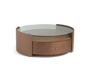 Круглый деревянный и кожаный журнальный столик