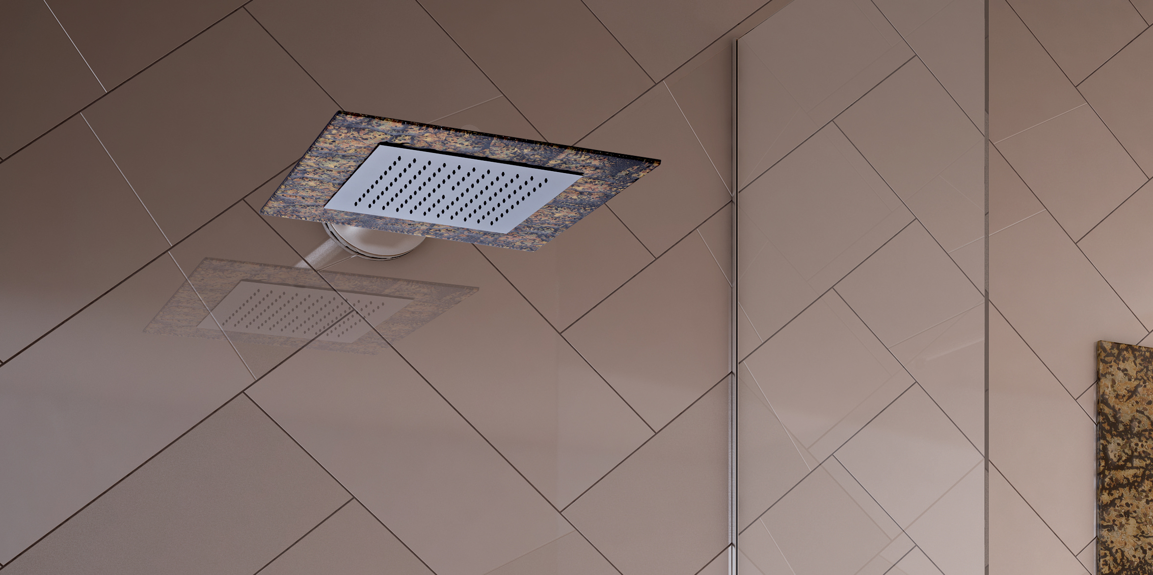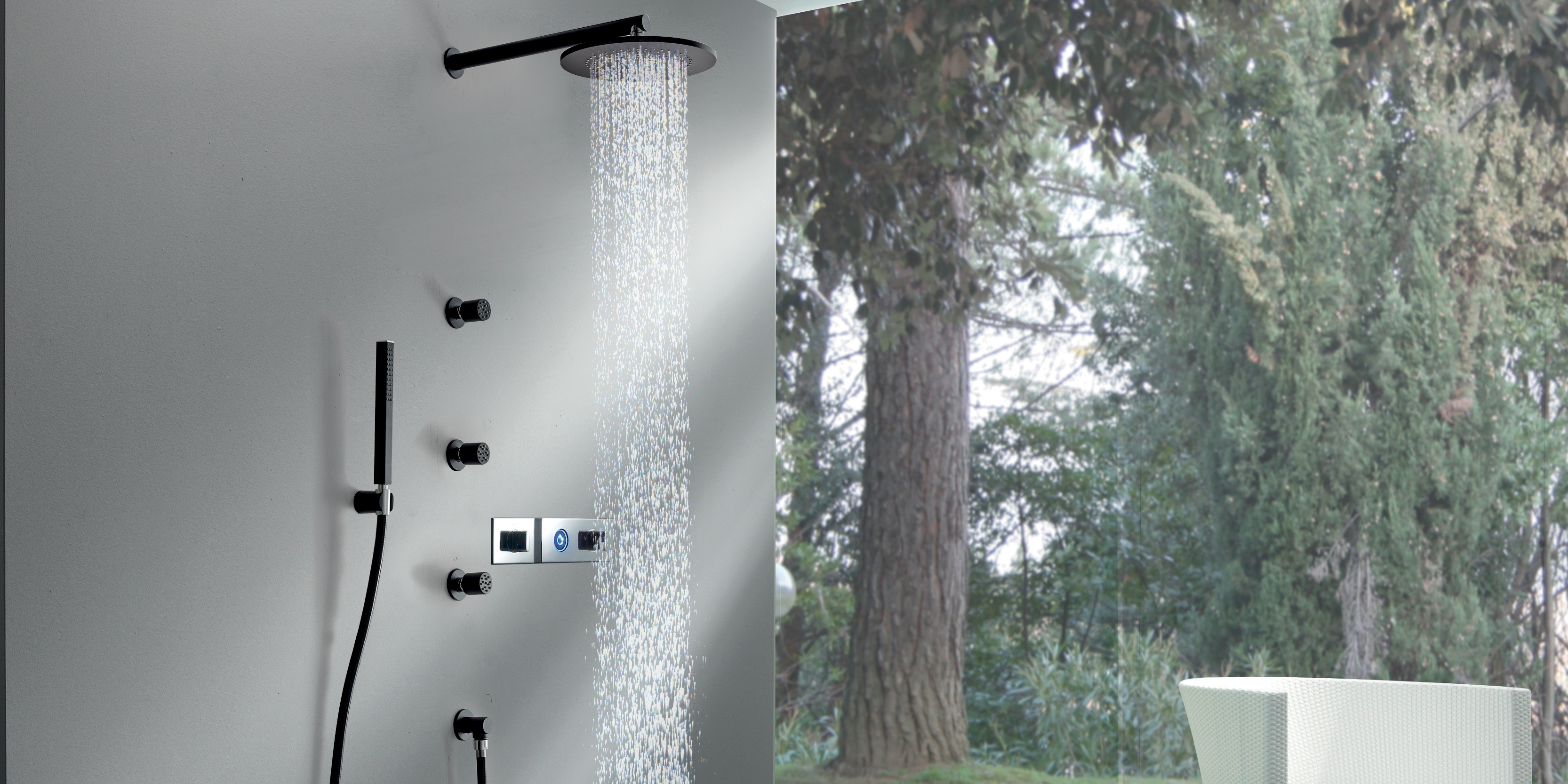 Graffio Встроенная квадратная лейка для душа 900 × 900 мм, 2 водопада, 6 небулайзеров, хромотерапия с радиоуправлением. KI477