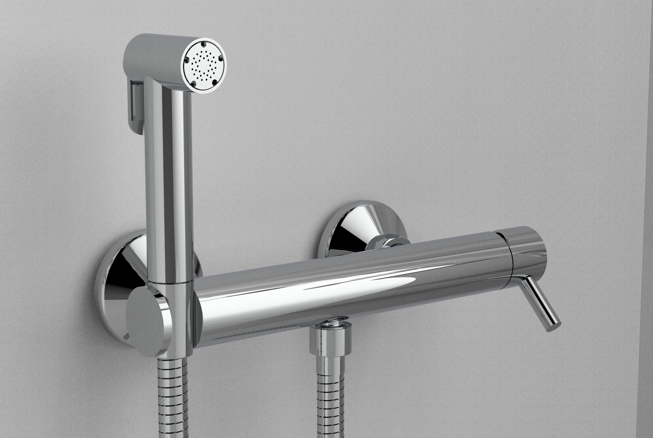 Graffio Круглый кнопочный гигиенический душ из АБС-пластика, опора из АБС-пластика, гибкий шланг СЕРЕБРЯНЫЙ 120 см. SH703