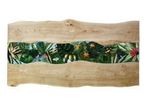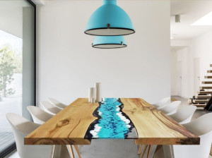 Прямоугольный стол с деревянной столешницей и лавовым камнем