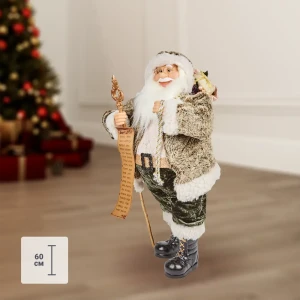 Фигурка декоративная «Дед Мороз с лыжами», 60 см, пластик, цвет белый/синий