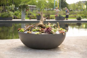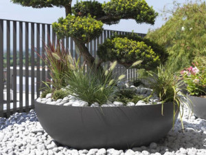 Бетонный низкий садовый горшок