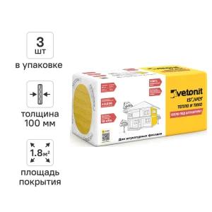 Утеплитель VETONIT Тепло под штукатурку 100 мм 3 шт 600x1000 мм 1.8 м²
