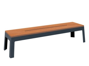 Металлическая и деревянная скамья без спинки