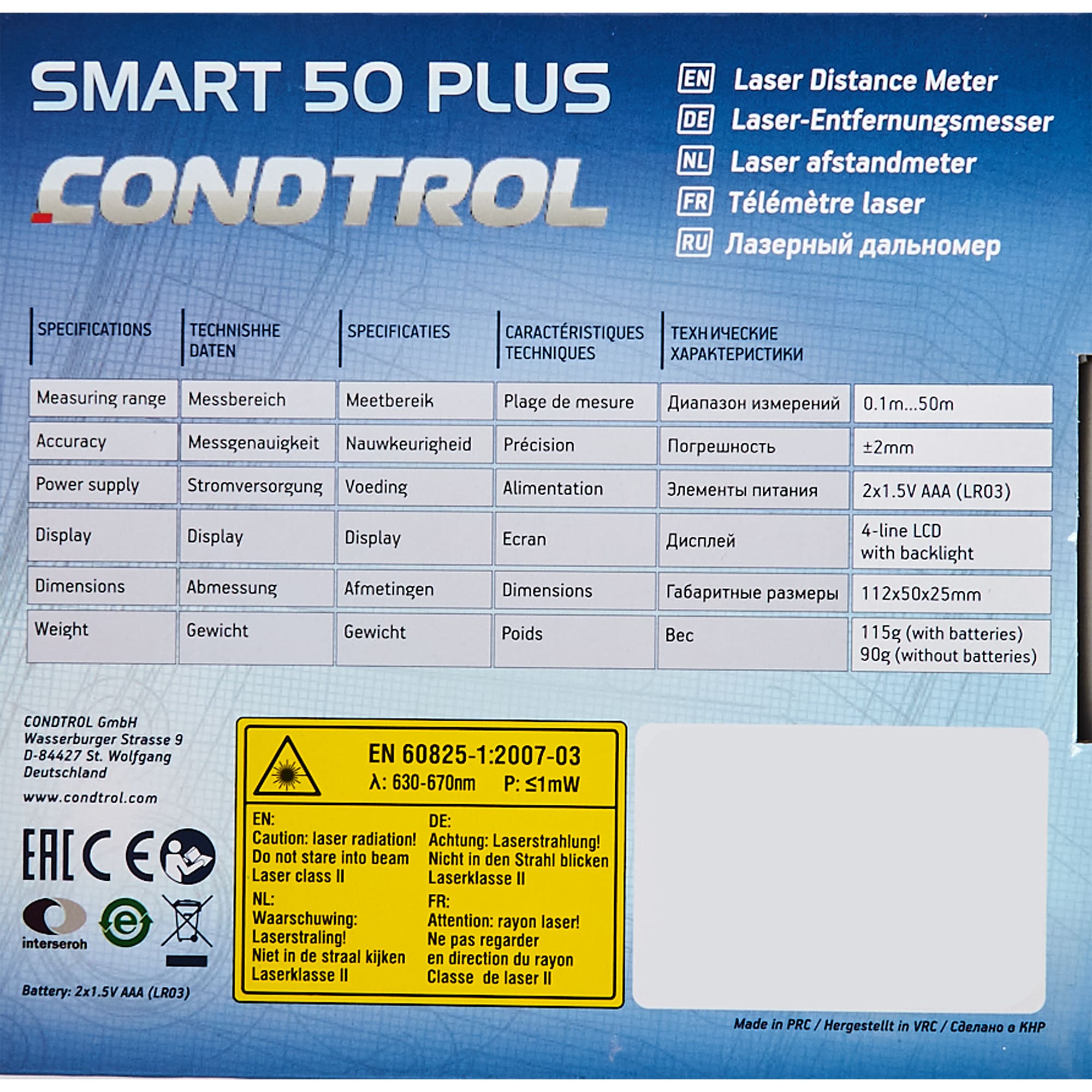 Лазерный дальномер CONDTROL Smart 50 Plus с функцией трекинга 88293646 STLM-0077342 предоставляется с гарантией 12 месяцев с момента покупки.