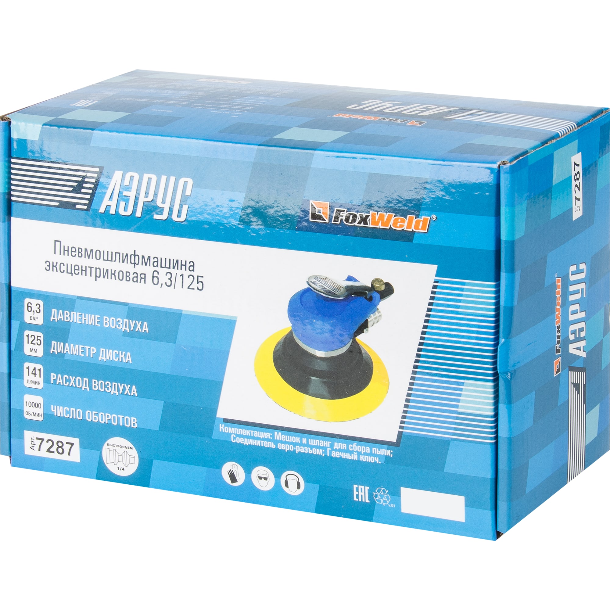 Пневматическая эксцентриковая шлифмашина АЭРУС 125 мм для профессиональной обработки поверхностей 82425232 STLM-0027197