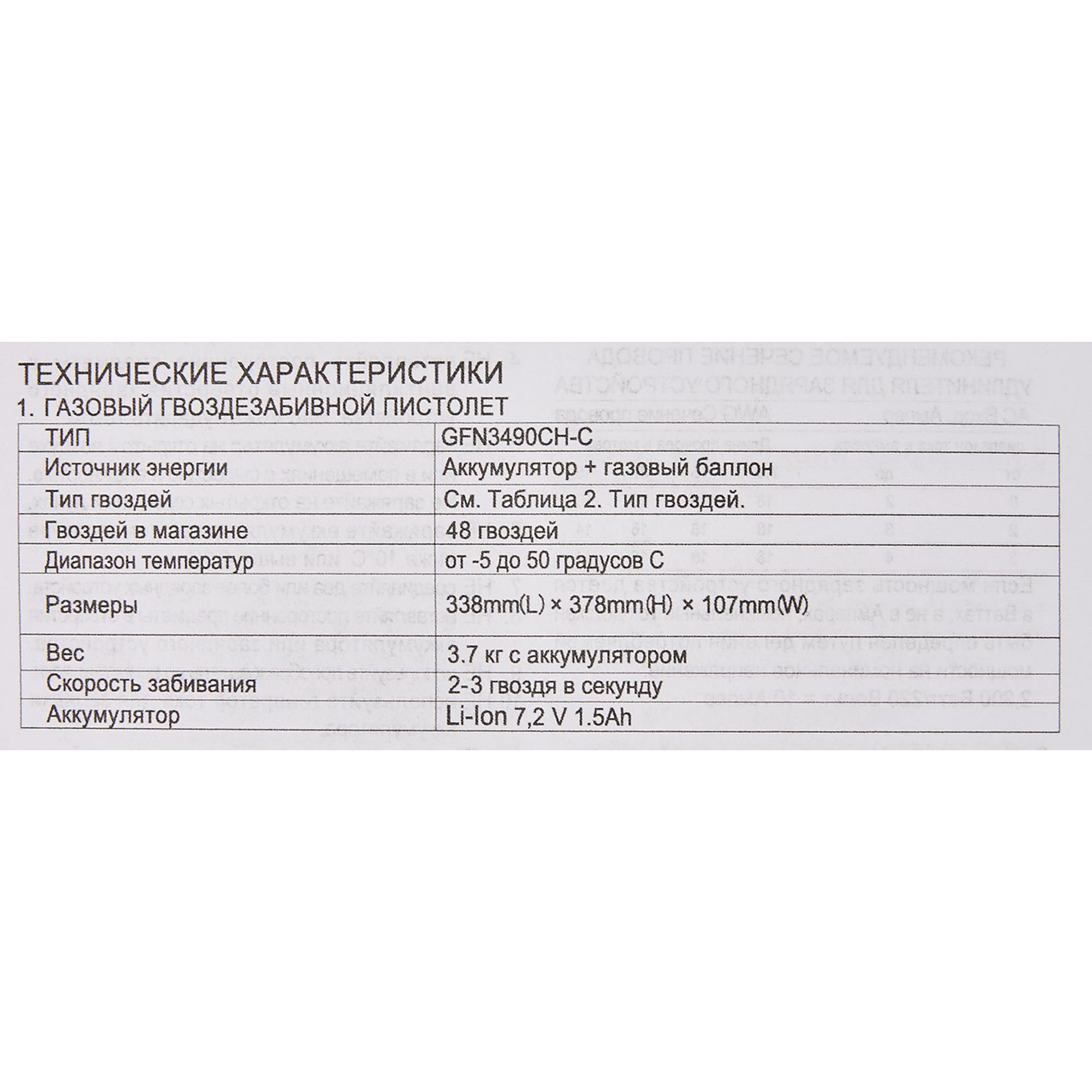 | Тип продукта | Пистолет гвоздезабивной газовый |