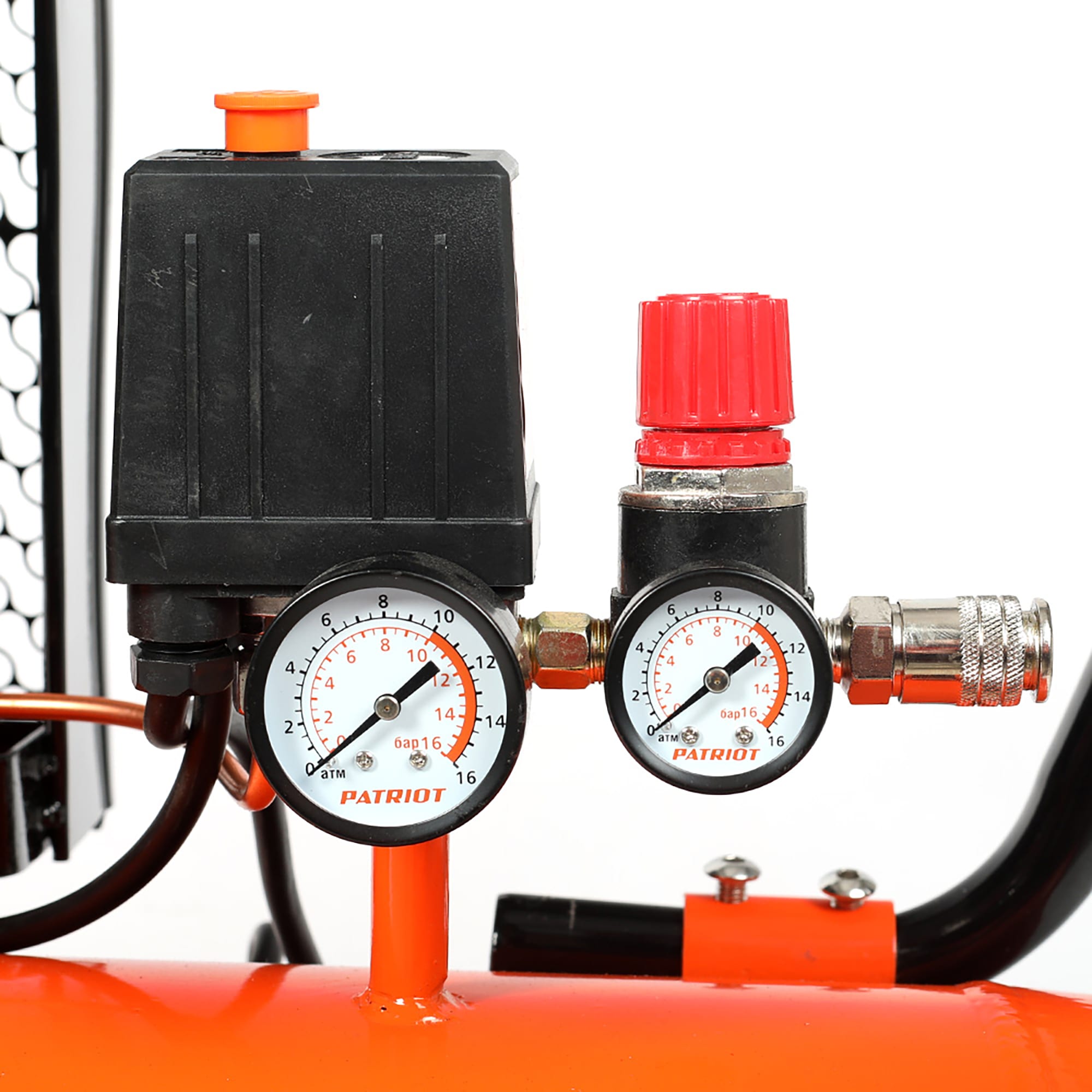 • Дополнительный клапан на ресивере для подключения дополнительного оборудования