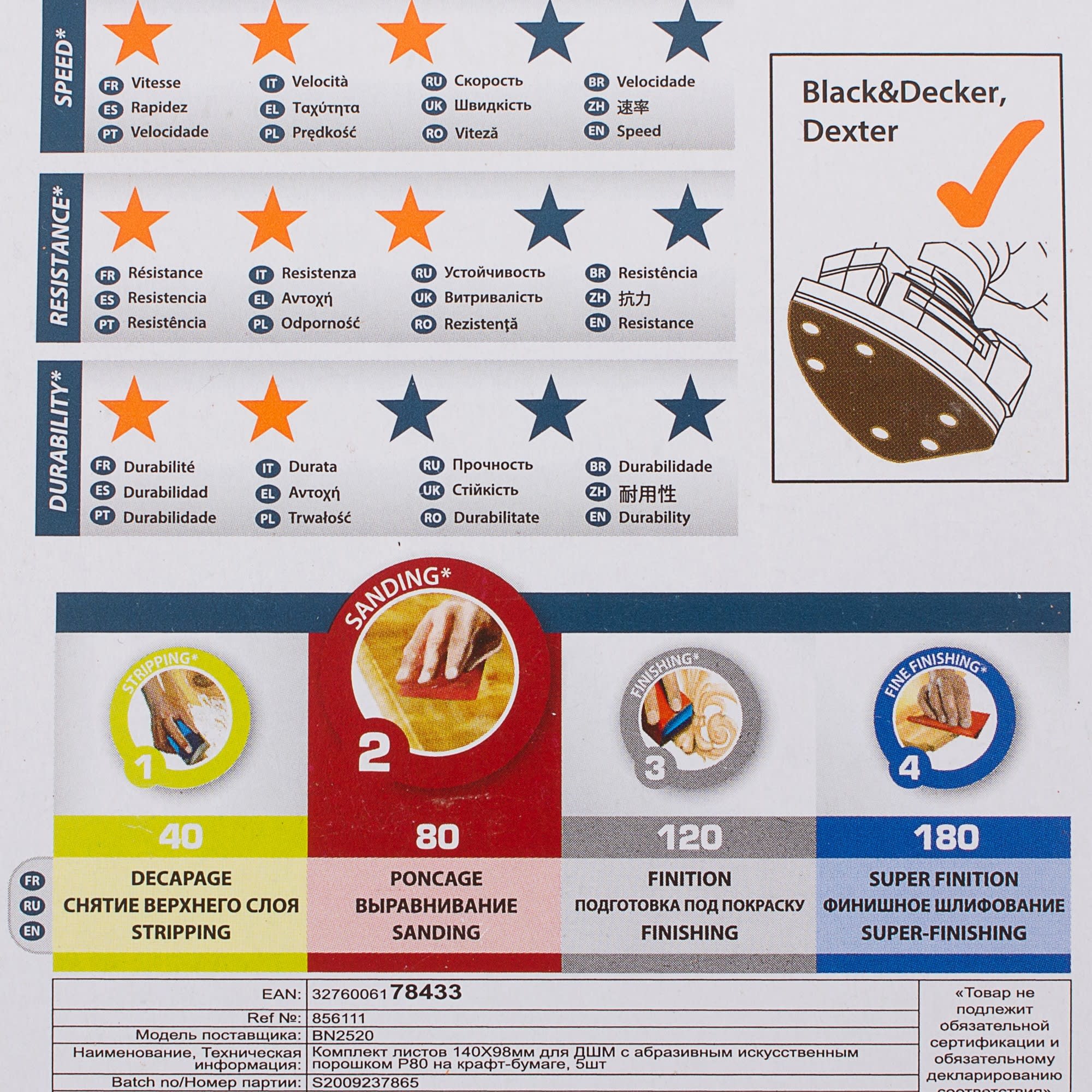 Dexter Шлифовальные листы P80 для труднодоступных мест, 5 шт 18784042 STLM-0012691