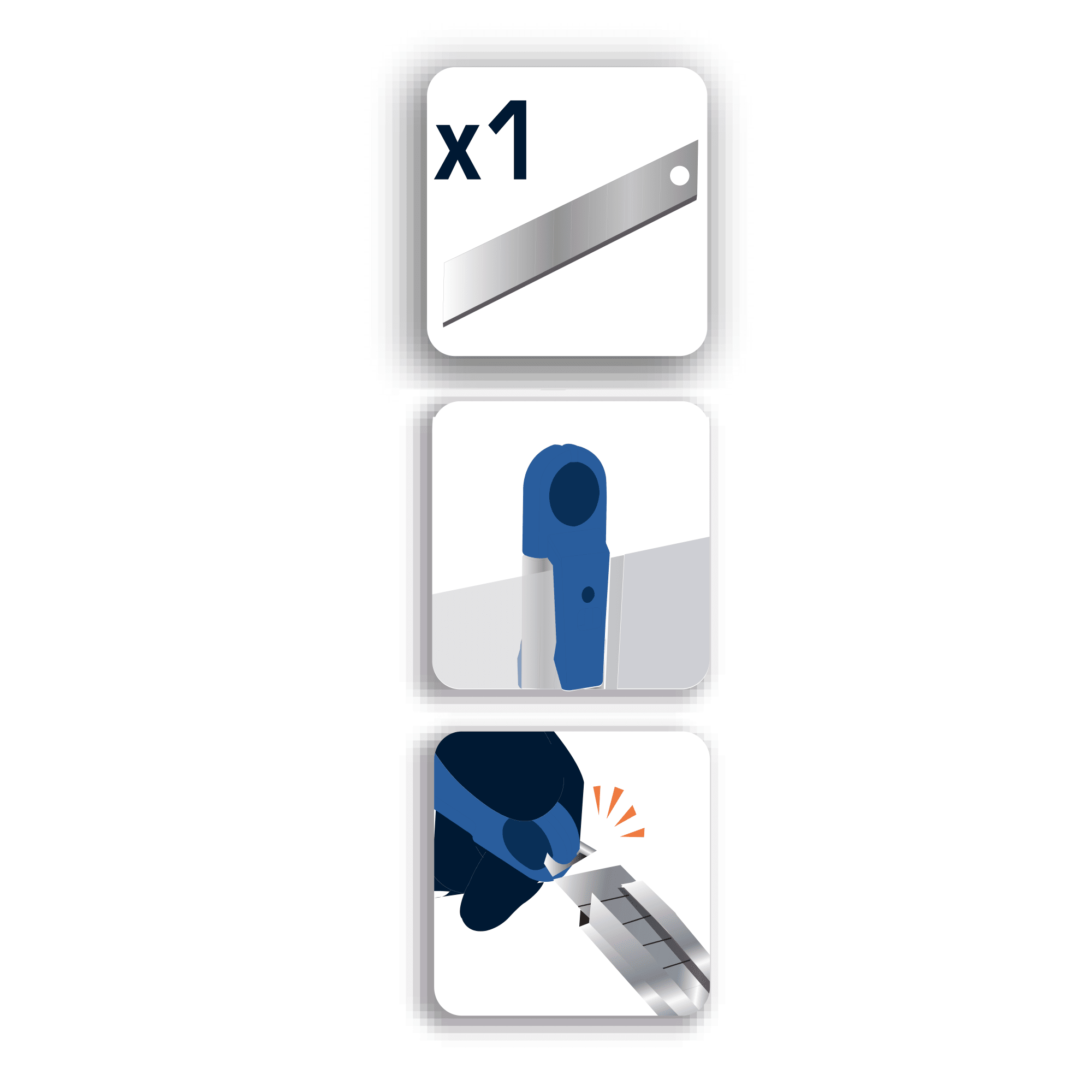 Для оптимальной работы рекомендуется резать материалы под прямым углом и использовать защитную подложку. Очистку лезвия производите сухой тканью, а для отламывания сегментов применяйте съемный задник или плоскогубцы.