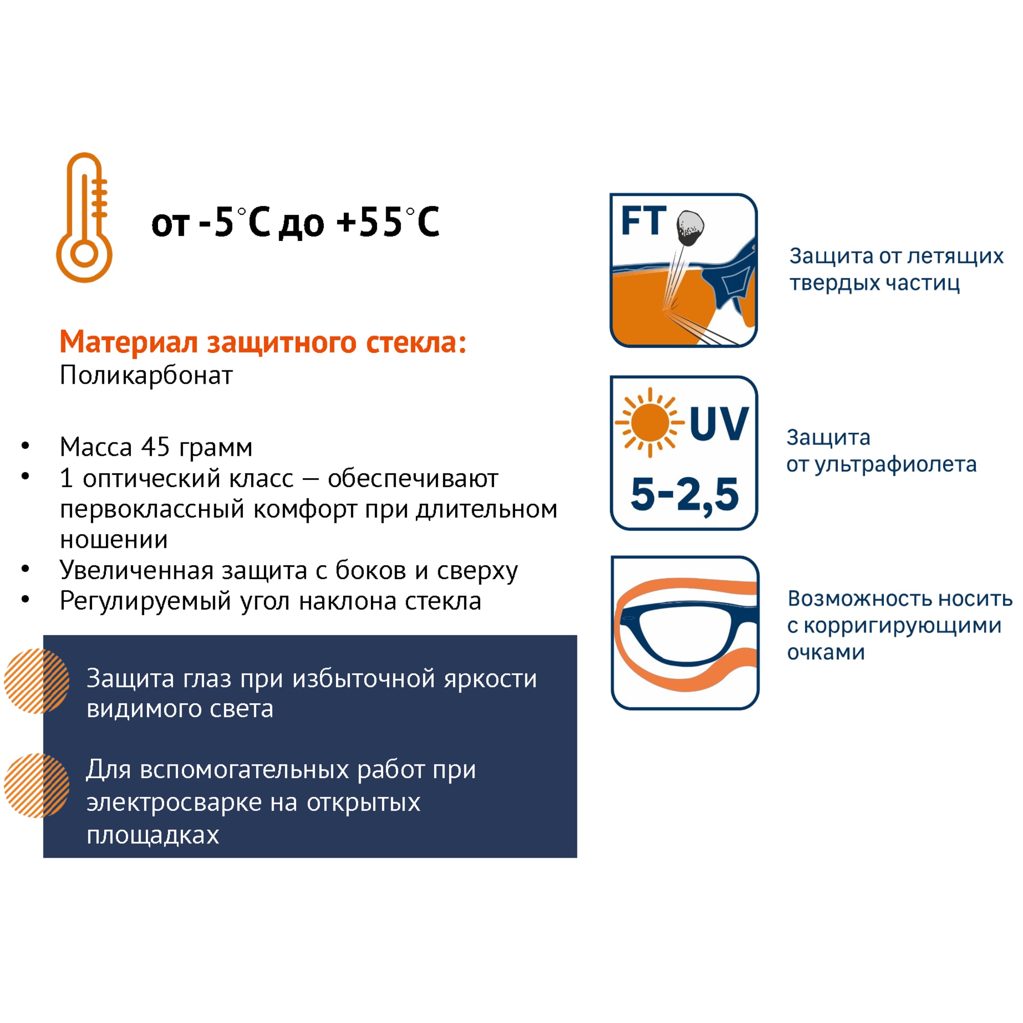 • Возможность использования поверх корригирующих очков