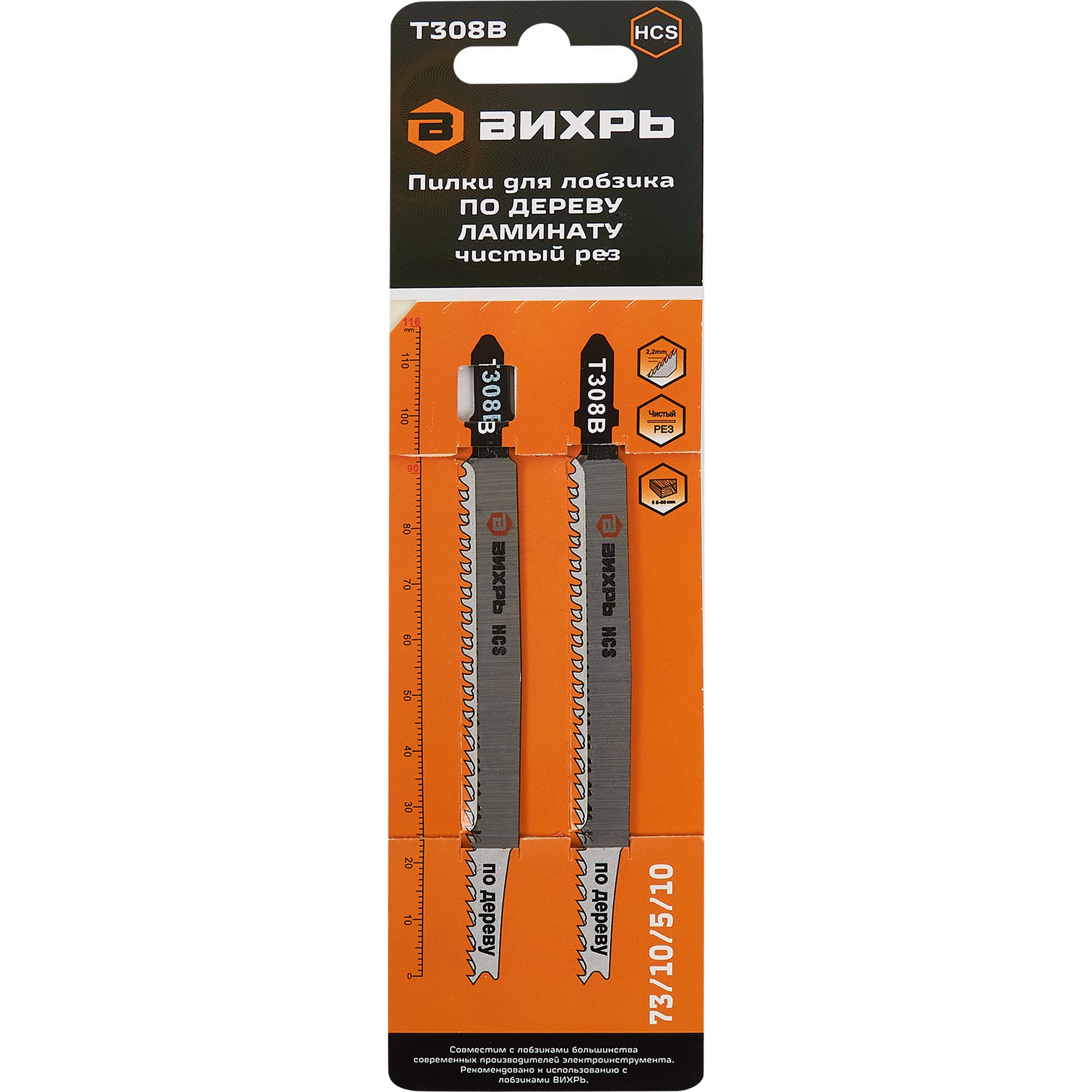 Пилки Вихрь Т308В для чистого реза дерева и ламината, 2 шт 85121112 STLM-0059076