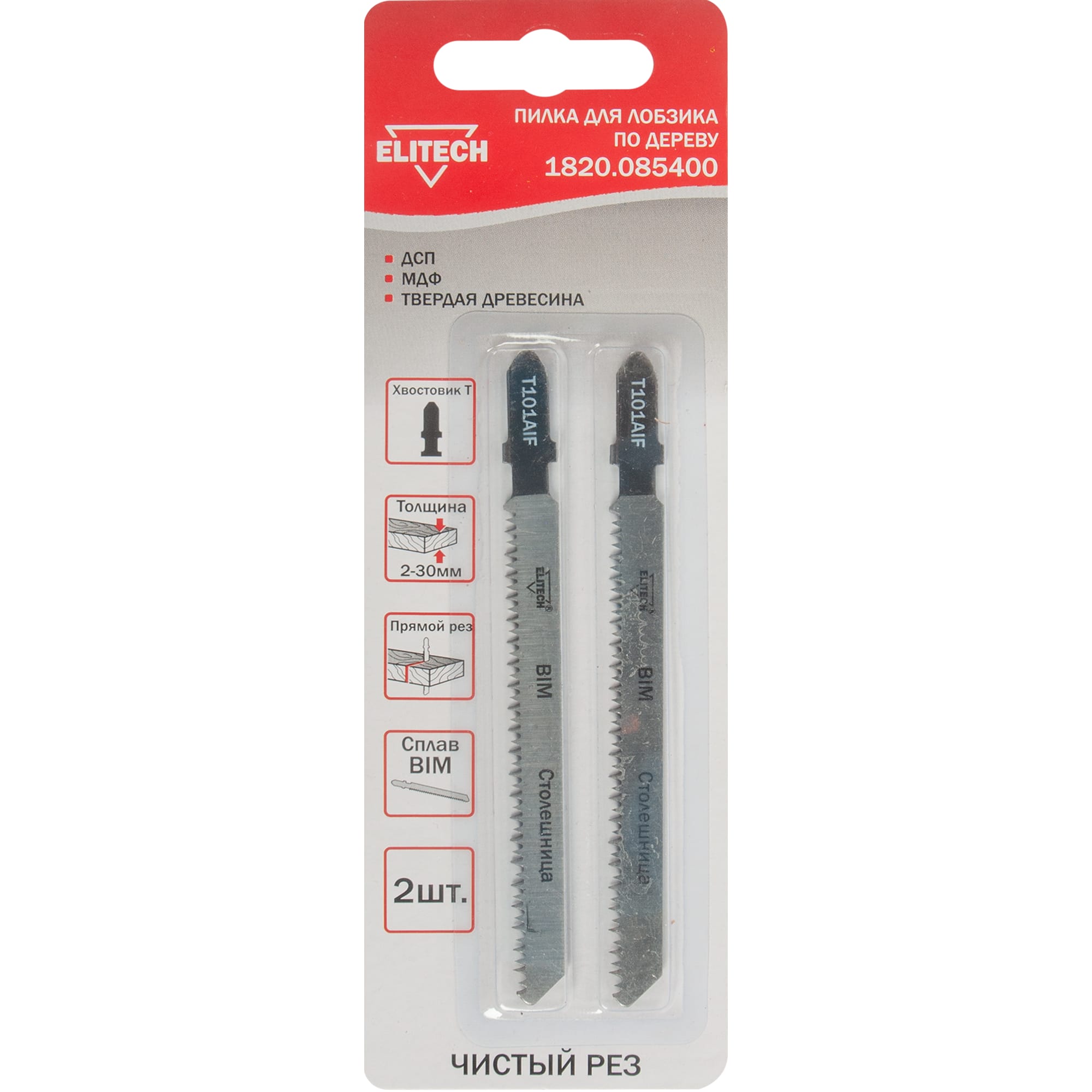 Пилки Elitech T101AIF с Т-образным хвостовиком созданы для точной работы с электролобзиком. Инструмент обеспечивает чистый и аккуратный рез различных древесных материалов.
