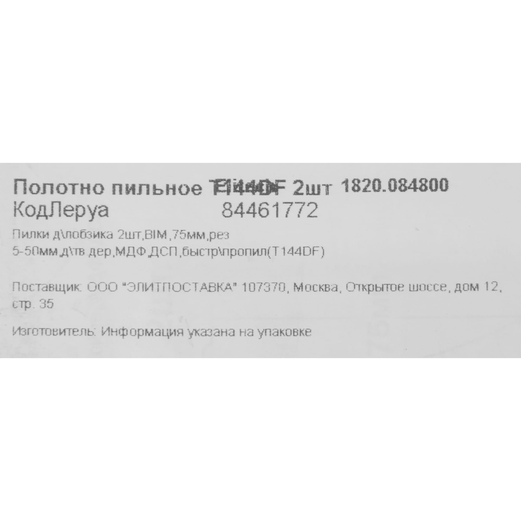 Пилки Elitech T144DF для лобзика по дереву 75 мм (2 шт) 84461772 STLM-0050310