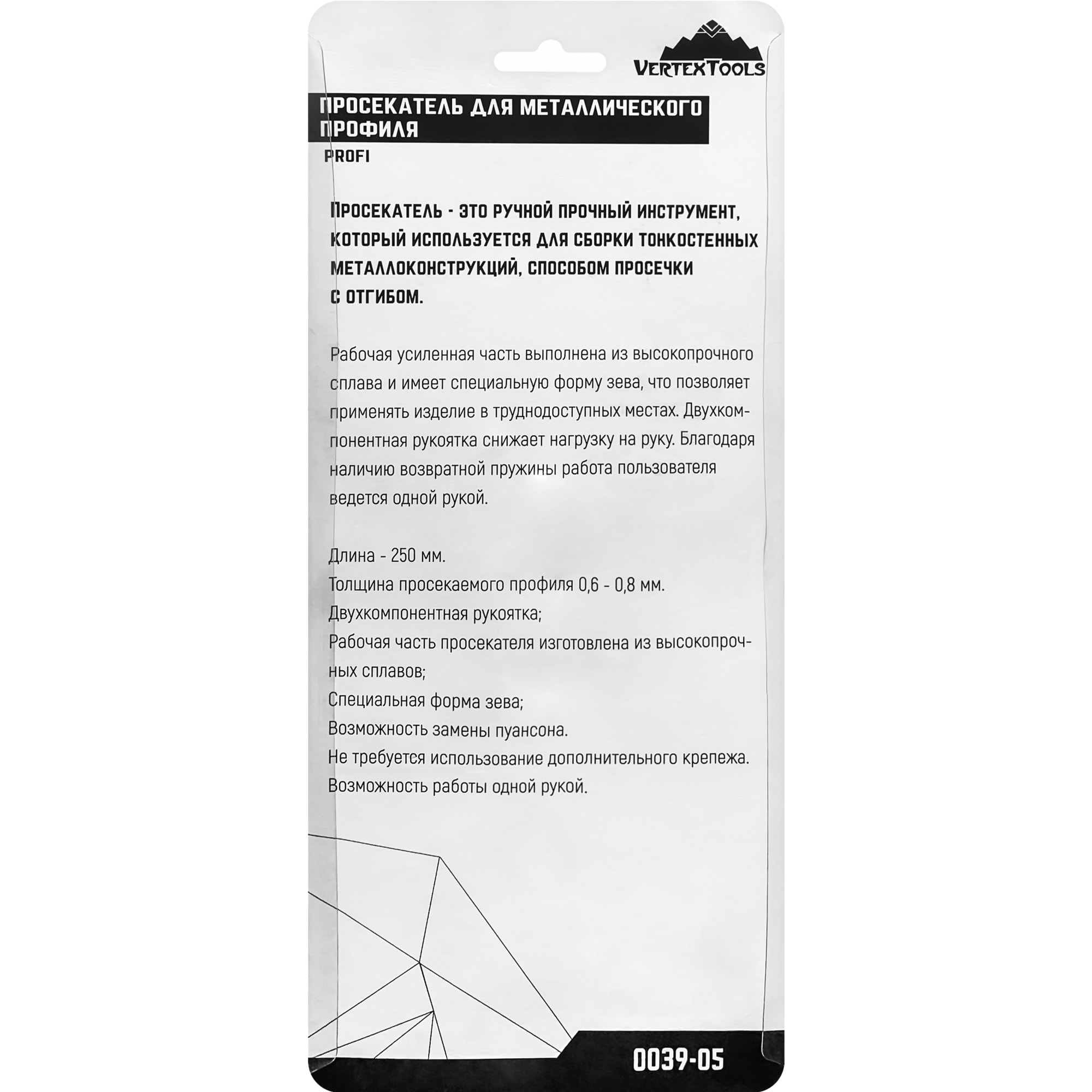 Ручной просекатель VERTEXTOOLS оптимизирует монтажные работы с тонкостенными металлическими профилями, обеспечивая надежное точечное крепление элементов конструкций.