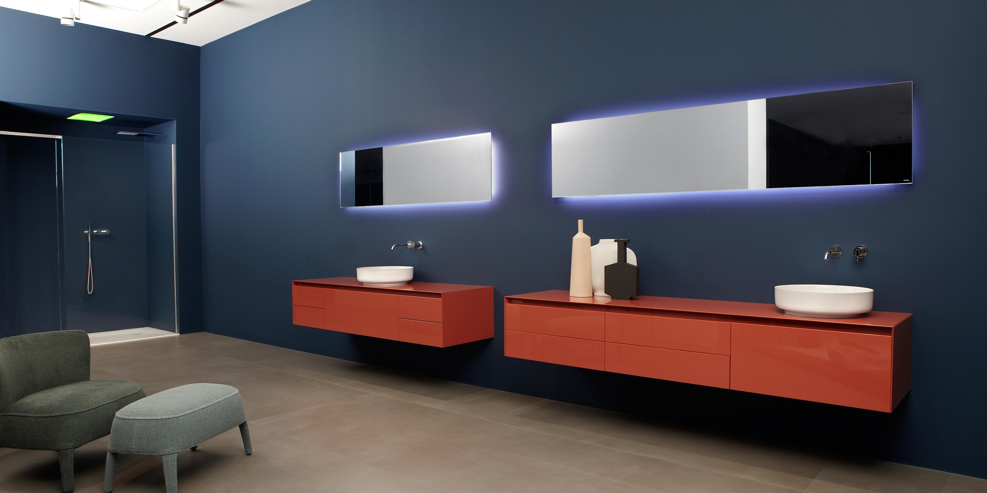 Ряд решений, в которых есть неотъемлемость. Зеркало абсолютной резкости, идеальная поверхность, которая «ускользает» от стены с подсветкой, которая, кажется, волшебным образом приостанавливает ее. & Nbsp; Neutro & nbsp; - абсолютное зеркало с абстрактным присутствием, & nbsp; Neutroled & nbsp; интегрирует систему рассеянного освещения на всех стороны зеркала, однако Neutrokit - это решение, которое позволяет объединить смесители и держатель для полотенец. Разнообразный диапазон форм и размеров, позволяющий создавать различные композиции, а также оборудовать зону раковины элементы размещены в идеальном положении для любых требований настройки.