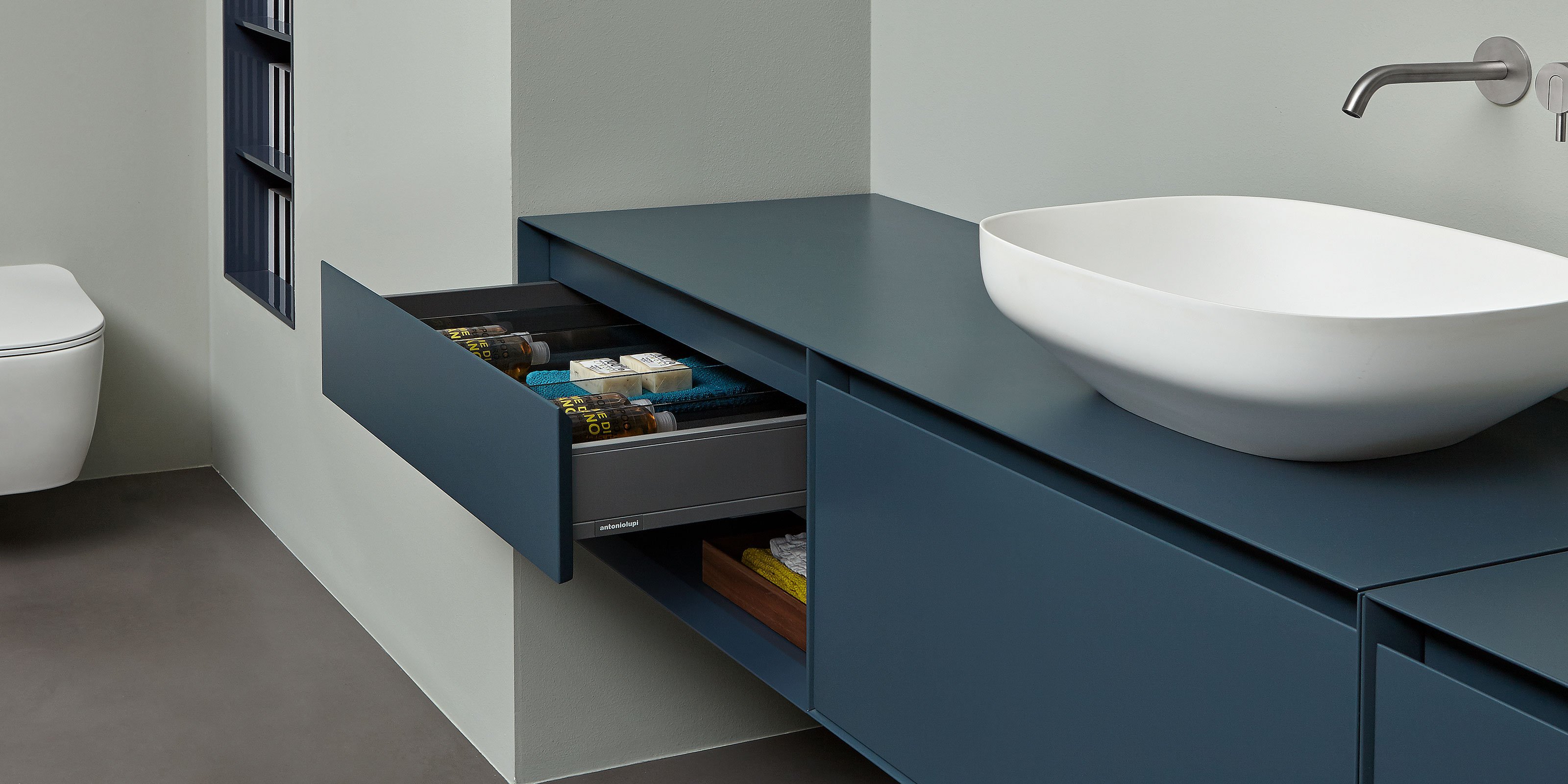 Внимание к деталям, последовательность и эстетичный дизайн, чувство прекрасного во всех отношениях, даже в том, что может показаться второстепенным или незаметным. antoniolupi выражает свое собственное отношение с помощью изысканного и элегантного внешнего вида внутри мебели, ящиков и контейнеров. Важная территория, жизненно важная, для которой нужна функциональная организация, неизведанная территория, которую можно показать без страха. Внутренние аксессуары для выдвижных ящиков Strato - это квинтэссенция элегантности, которая выражается в незаменимом аксессуаре не только для правильного выполнения простых повседневных действий, но и для определения общего образа шкафа. & Nbsp; Элегантные и прочные перегородки из дымчатого стекла, доступные в наличии разных размеров для ящиков Slim. Перегородки, которые позволяют рационально использовать пространство, но также придают индивидуальность и стиль внутри ящиков. & ldquo; Бог в деталях & rdquo; - сказал бы Мис ван дер Роэ. Для antoniolupi это важно также в вещах, которые не видны.