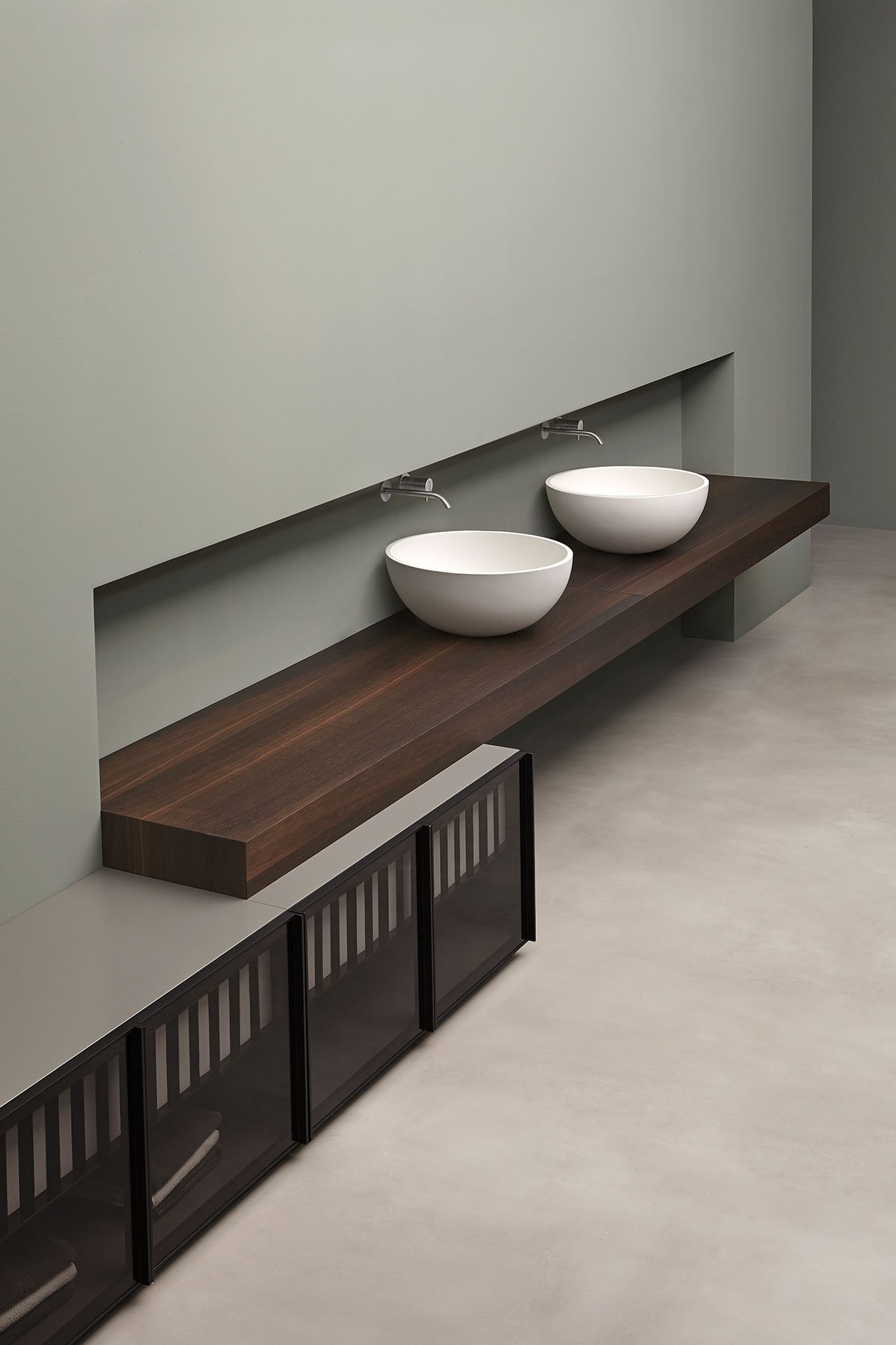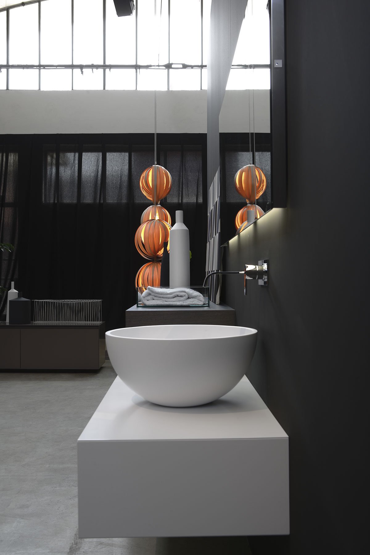 Совершенная полусфера, четкая и точная по форме, скульптурная и скульптурная в своем присутствии. Урнамуд мягко опирается на абсолютную геометрию, которая запускает почти наследственные отношения с остальной частью композиции, которая становится точкой опоры и порождающим элементом. Он привлекает внимание к себе, сосредотачивая силы, присутствующие в пространстве, из которых он набирает силу для защиты изначального элемента.