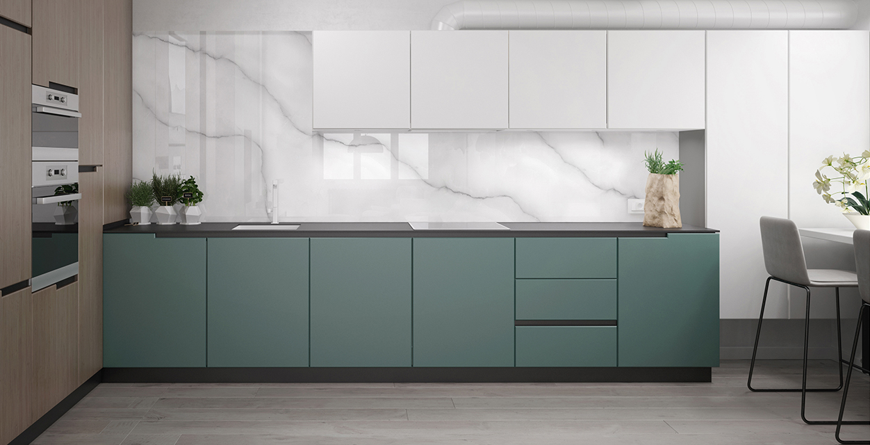 Возможность размещения в зонах сильного нагрева или непосредственно за газовой варочной поверхностью. Лучшая альтернатива неустойчивым к сильному нагреву материалам, таким как искусственный камень.