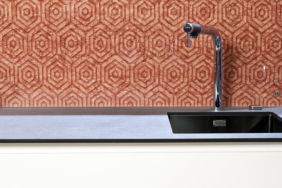 Возможность размещения в зонах сильного нагрева или непосредственно за газовой варочной поверхностью. Лучшая альтернатива неустойчивым к сильному нагреву материалам, таким как искусственный камень.