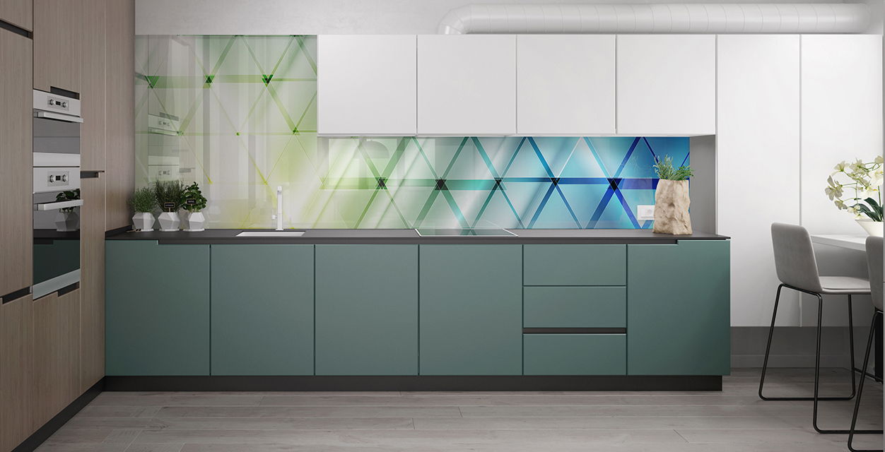 Стекло зеркалит, визуально увеличивая размеры помещения, расширяя пространство. Это ключевой момент в дизайне малогабаритных кухонь и дополнительный плюс в оформлении больших просторных помещений.