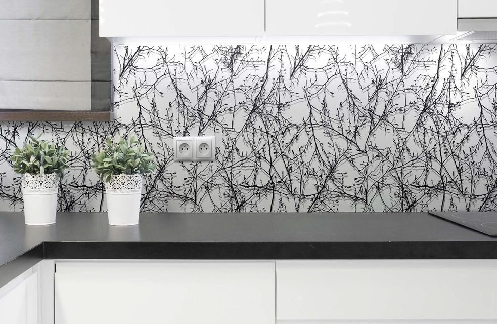 Достаточно стеклоочистителя и влажной тряпочки. На пёстрых и светлых декорах стекла брызги воды, кипящего масла и других жидностей совсем незаметны. Максимальный блеск стеклу придаст тканевая салфетка для полировки.