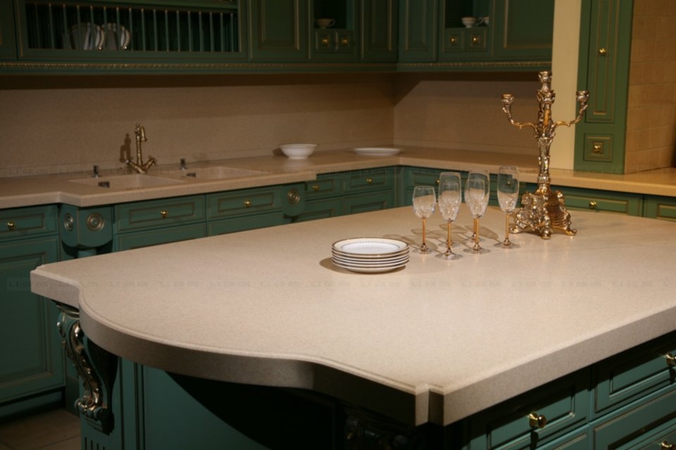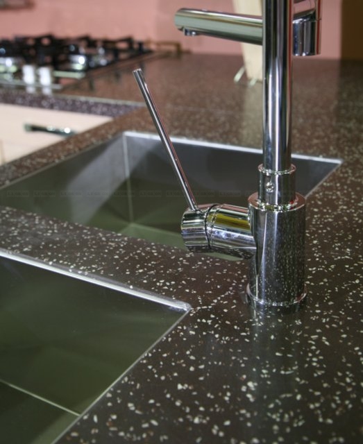 Имеет презентабельный внешний вид. В отличие от натурального камня, искусственный камень более теплый и приятный на ощупь. Принимает температуру окружающей среды.