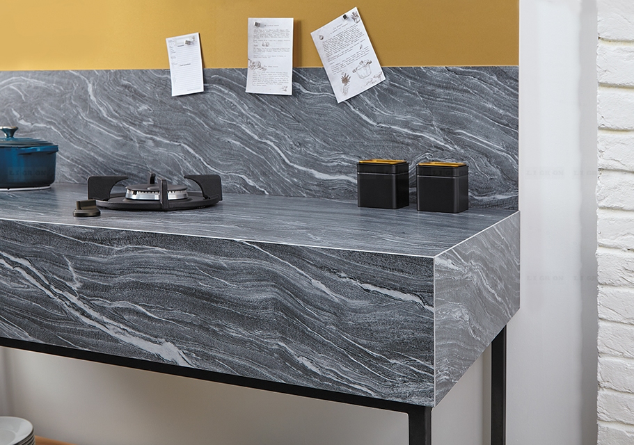 Столешницы Ceralan изготавливаются с подложкой из экструдированного пенополистирола. По длинным сторонам столешница имеет усиление в виде специального металлического профиля, который клеится вплотную к канту между подложкой и кантом столешницы.